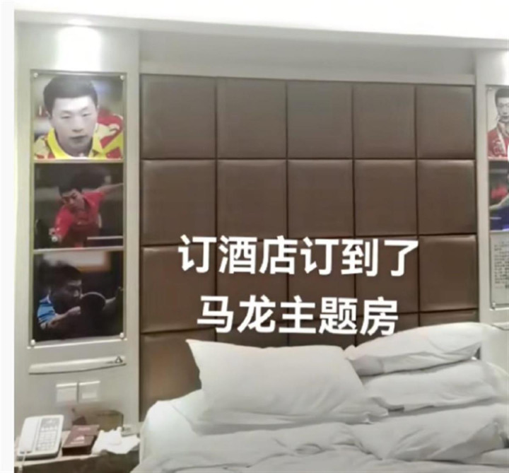 4月10日,有关“马龙主题酒店”的话题登上热搜,网友发视频调侃,酒店客房床头、卫生间墙壁上都挂着乒乓球世界冠军马龙的照片,“世界冠军盯着你上厕所”“睡觉都会梦见马龙教你打乒乓球”。
